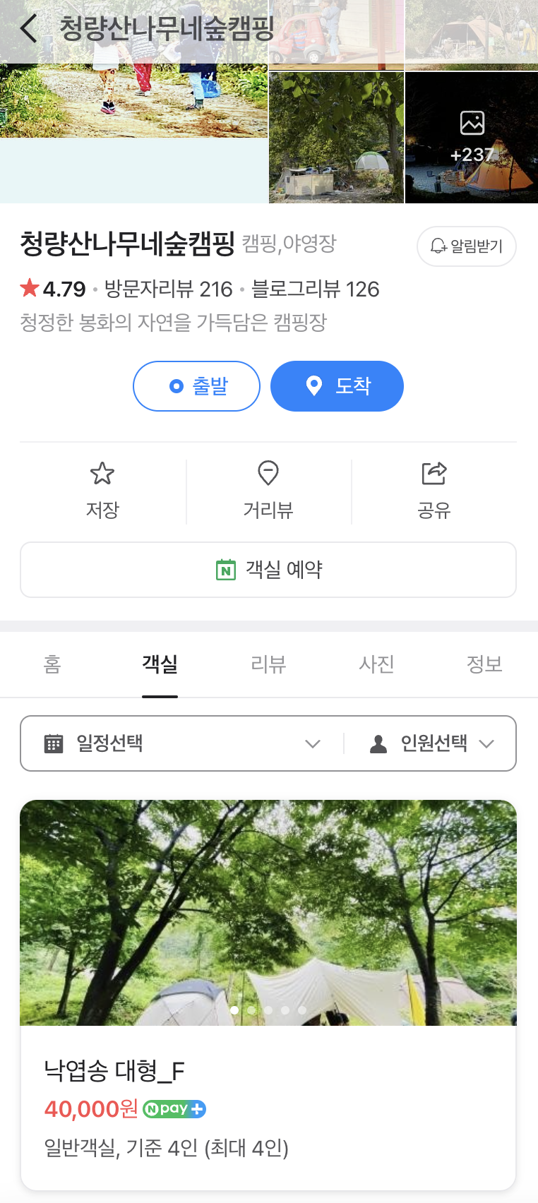 네이버에서는 객실 상관없이 40,000원에 예약이 가능합니다.