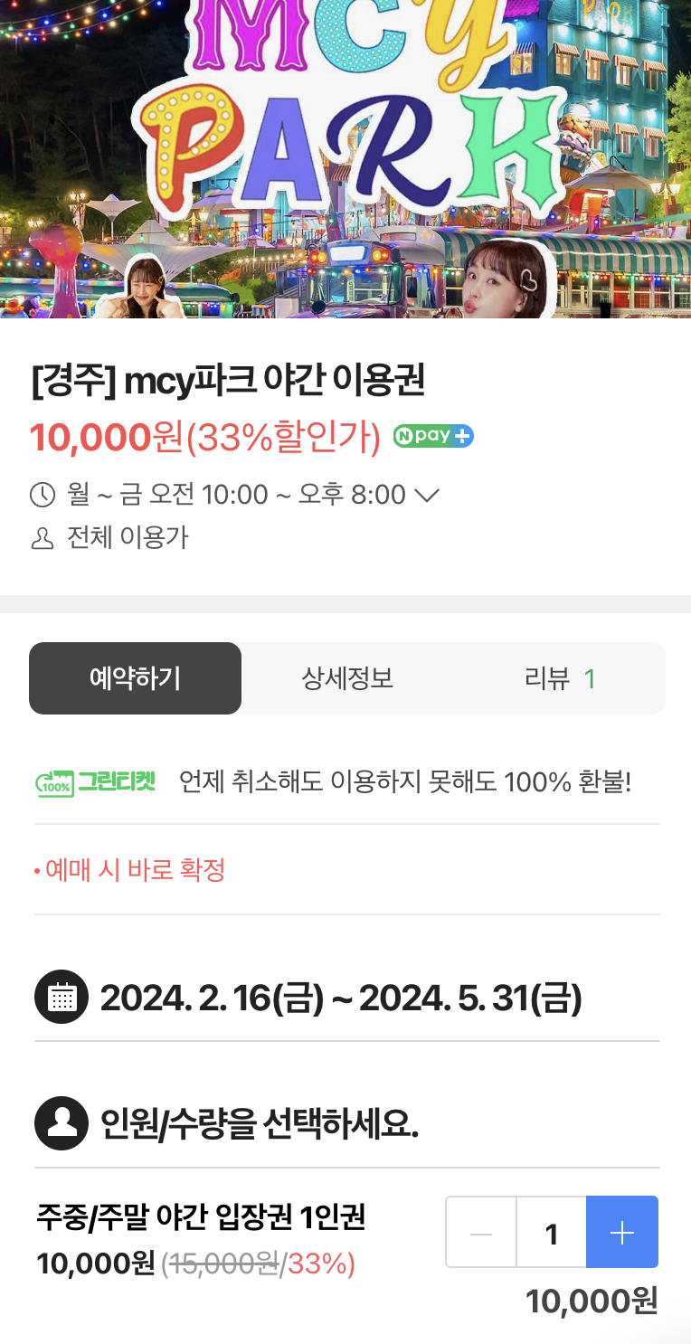 네이버에서 mcy파크 검색해서 예매해서 많이 들어가지요? 똑같이 들어가 볼게요.