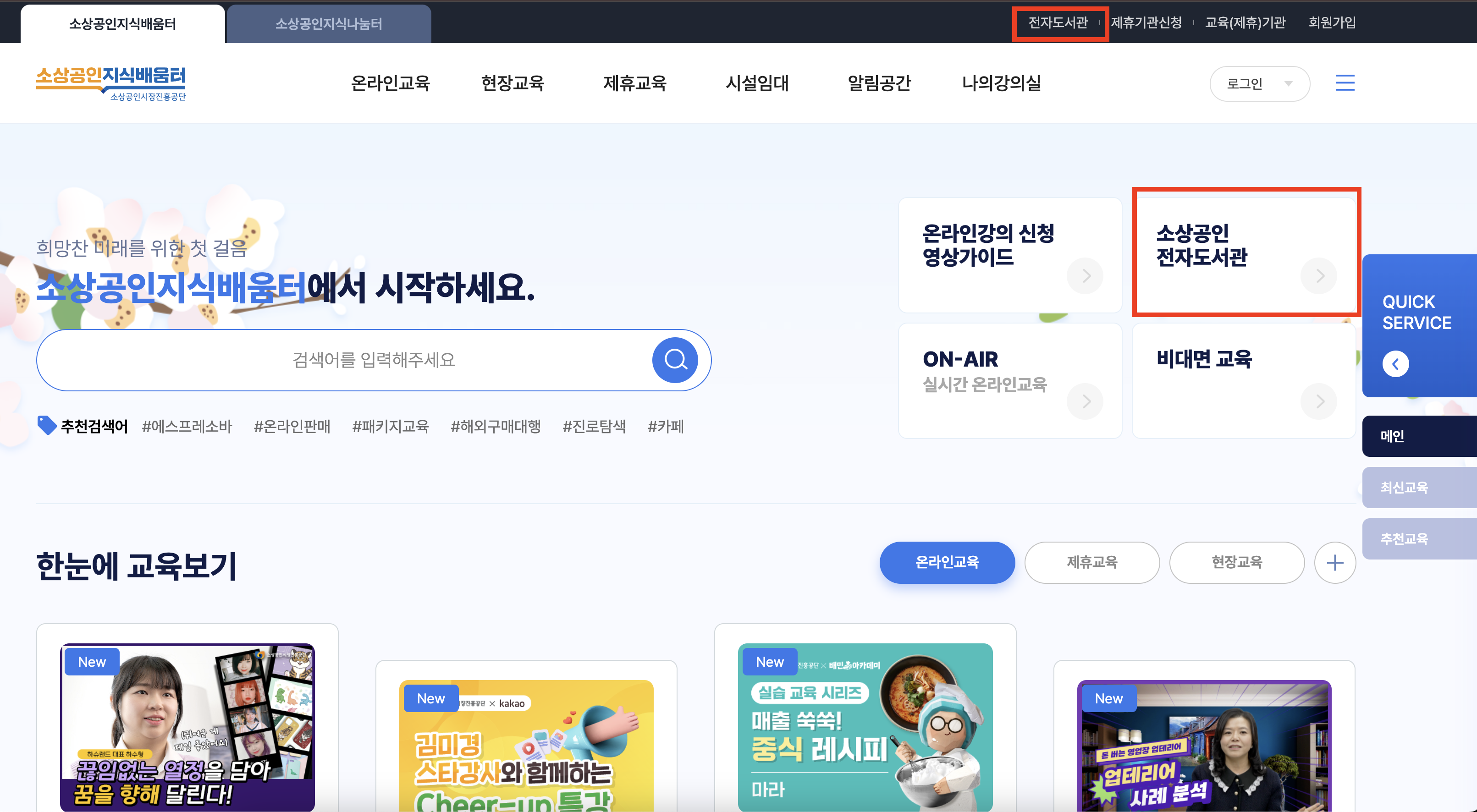 빨간 체크 박스처럼 전자도서관이나 소상공인 전자도서관으로 들어가시면 됩니다.