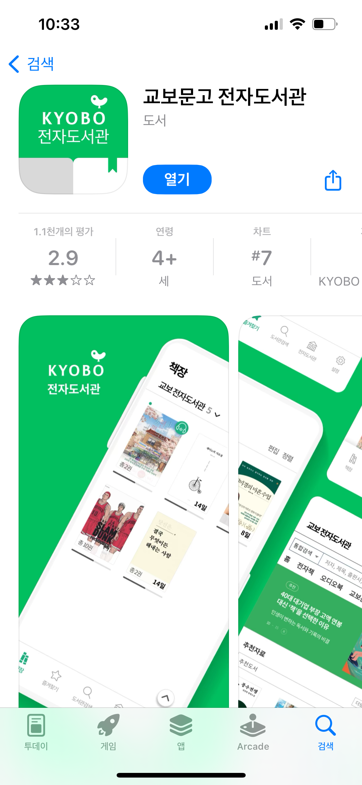 - '교보문고 전자도서관' 앱 설치