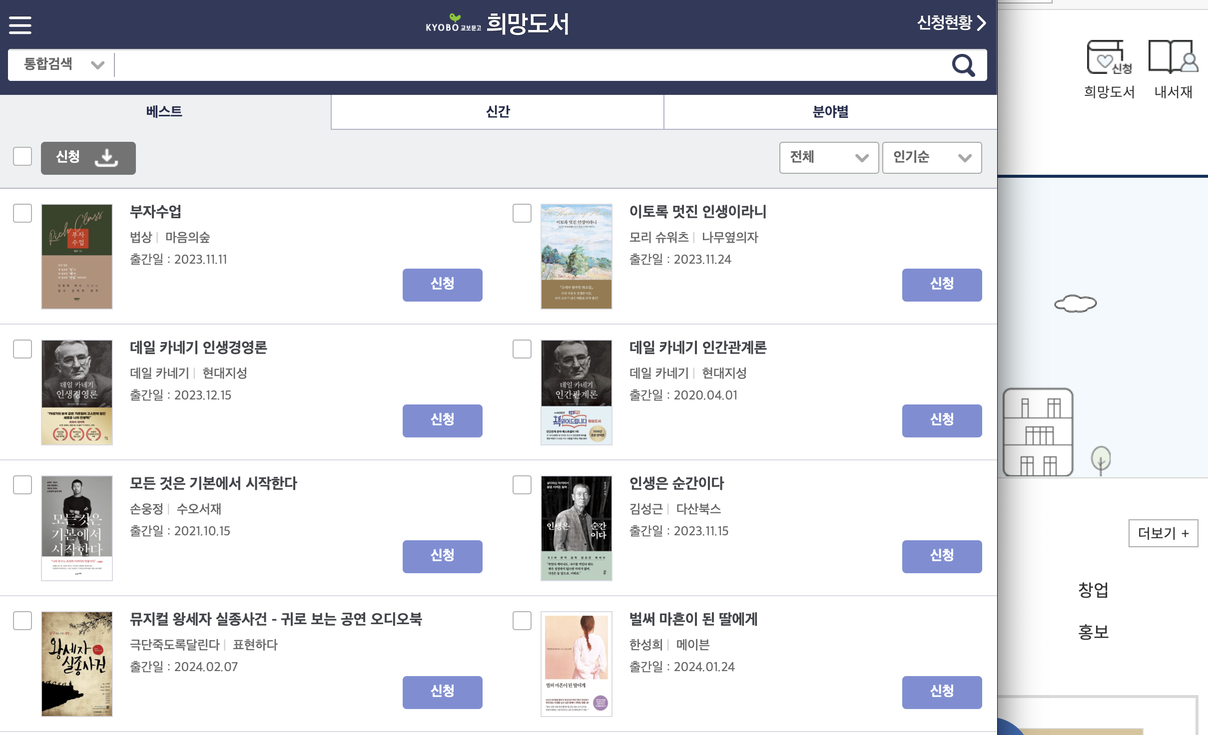 근처 도서관에서는 보유책이라 희망도서는 신청받지 않고..