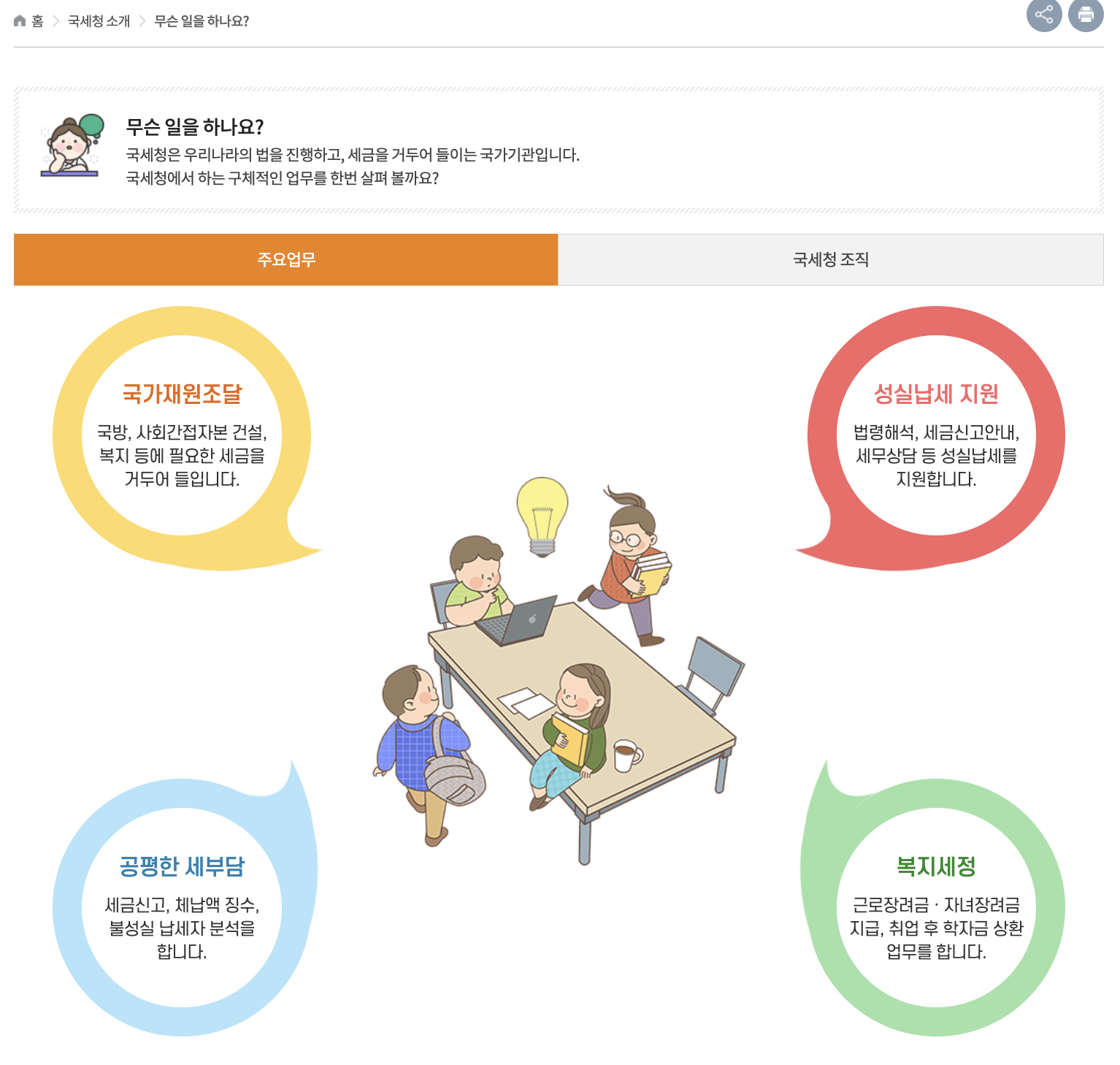 국세청 소개에서부터 ~ 부모님께서 설명하기 좀 어려운 부분인 세금에 대해서도 안내하고