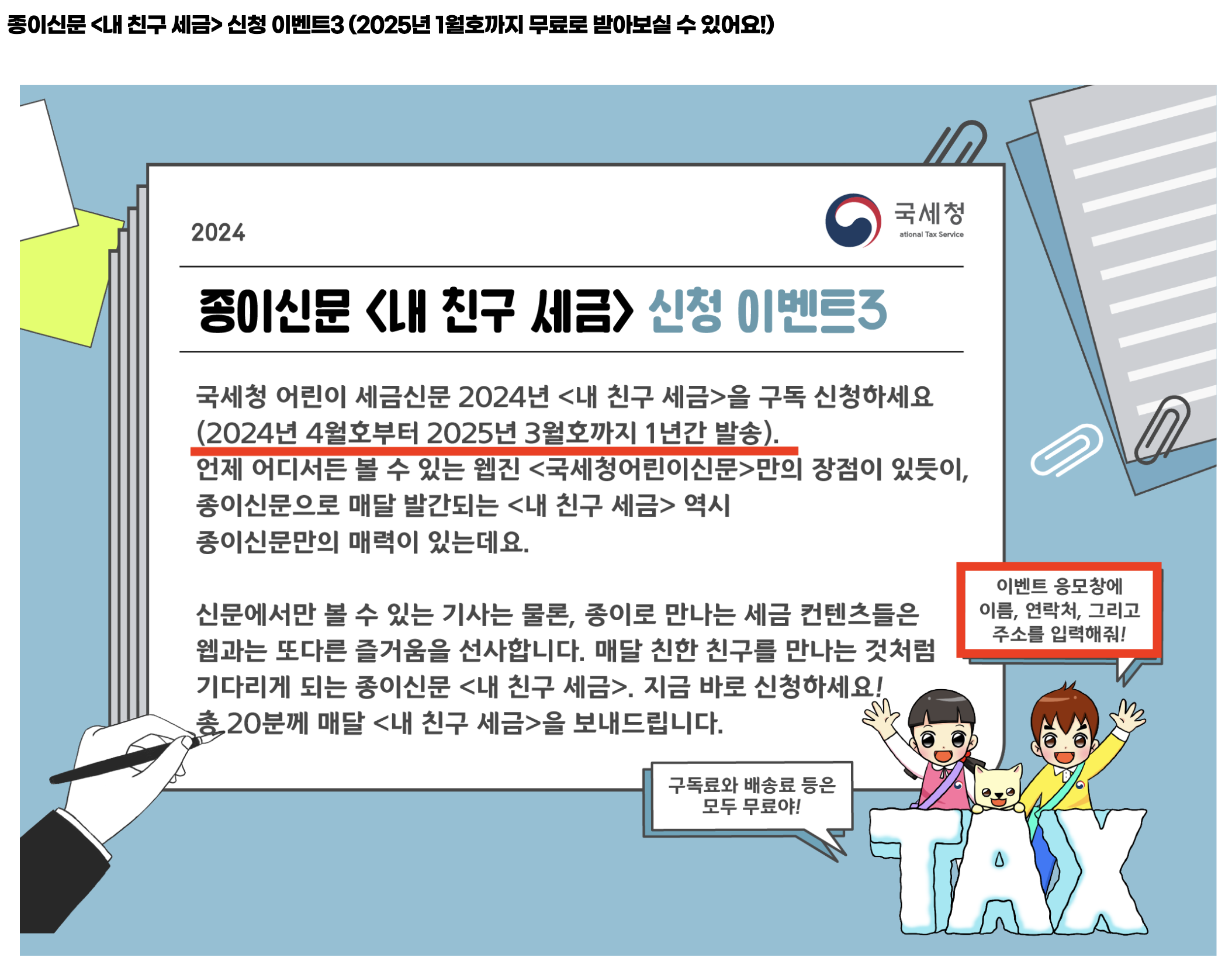 종이신문 < 내 친구 세금 > 신청 이벤트