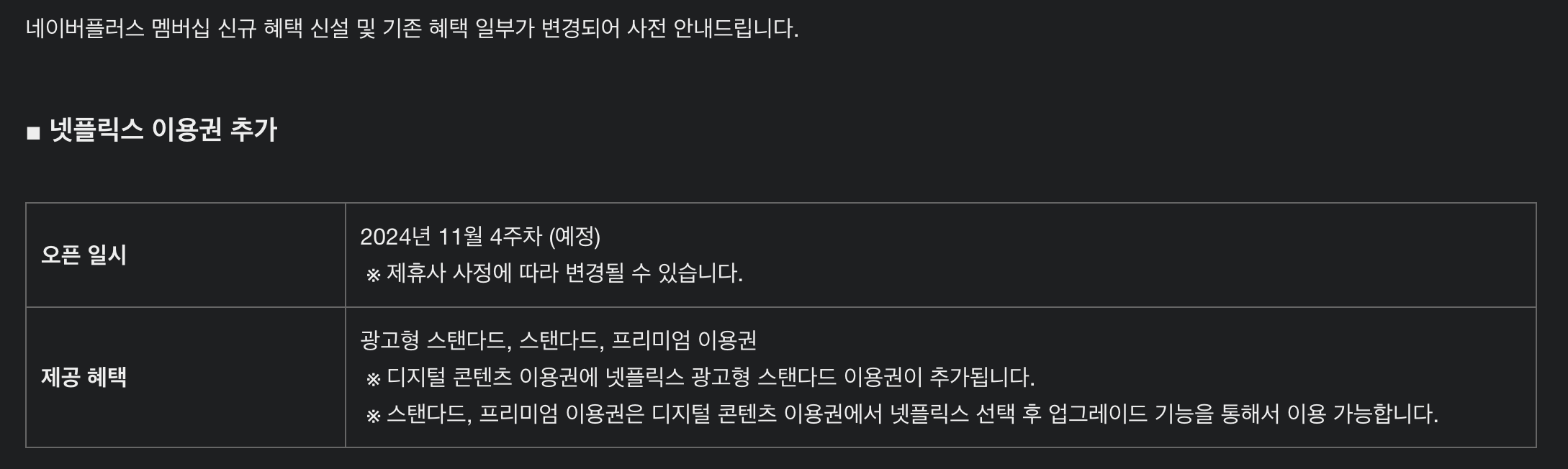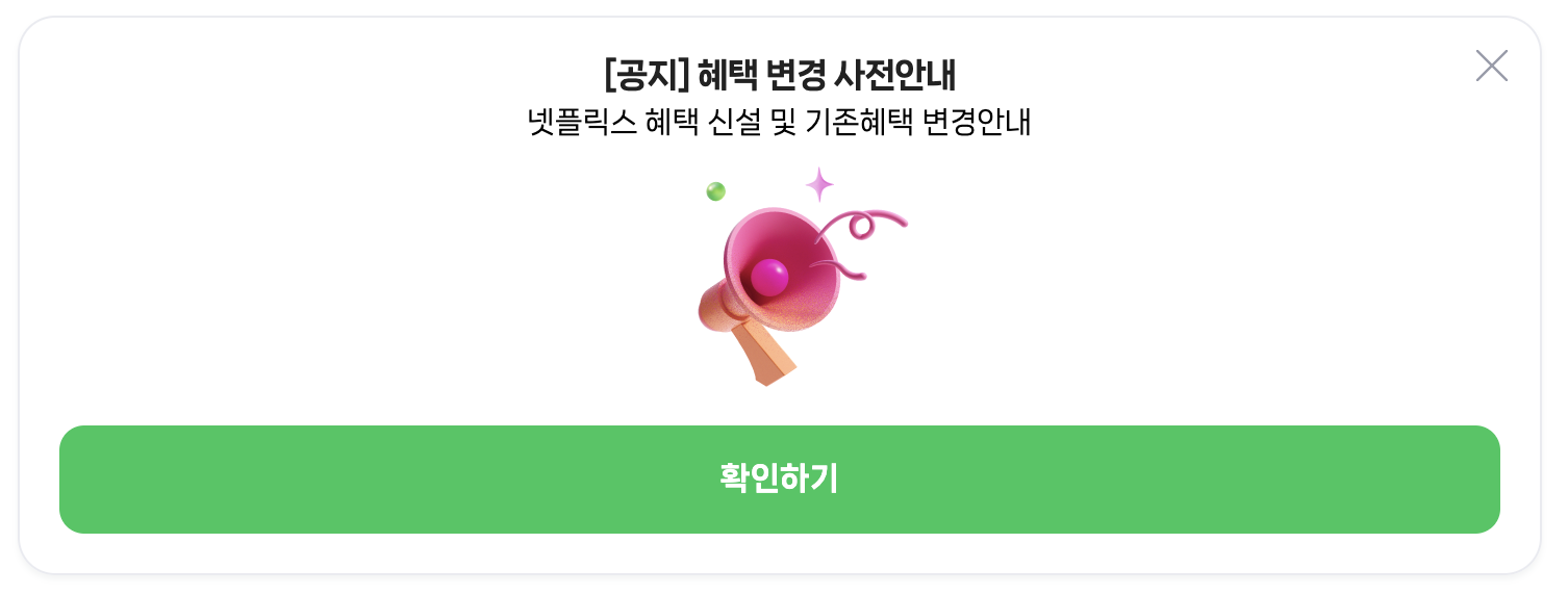 신규 혜택 신설로 넷플릭스가 추가 되었습니다 !