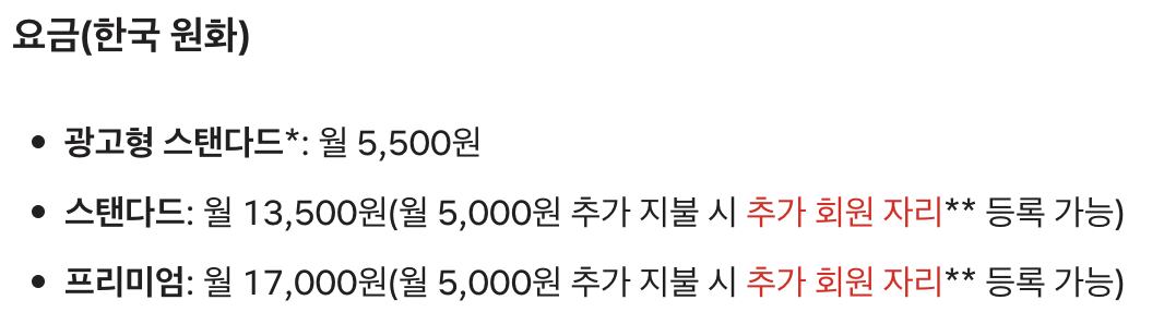 넷플릭스 선택 후 업그레이드 기능을 통해서 이용 가능합니다.