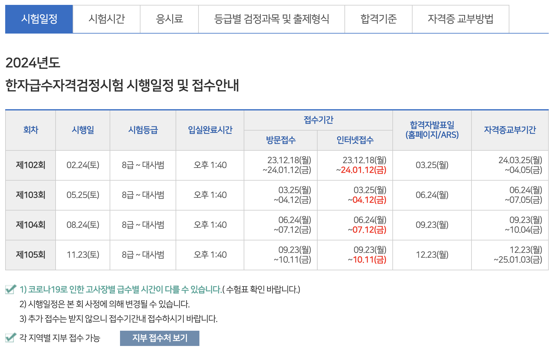 2024년 대한검정회 시험 일정