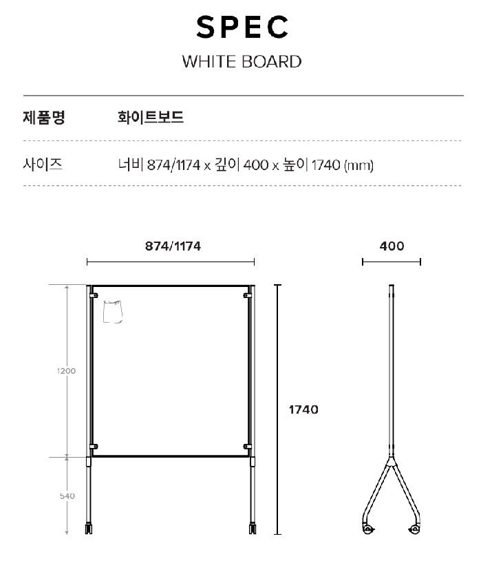 소재 : 화이트보드 : 9T 허니패드 + 양면 PET화이트보드 원판 + AL + ABS