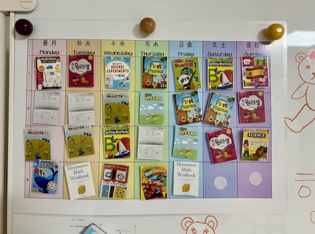 저희 집은 올해 6세(한국나이)가 되면서 저녁 공부스케줄은 아이에게 짜보라고