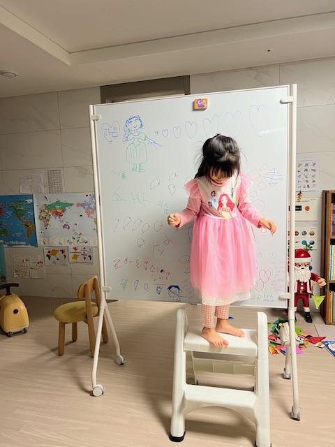 24년 02월 기준 만 5세 여아 키 111센티 아이가 섰을 때 화이트보드 체감 사이즈예요.