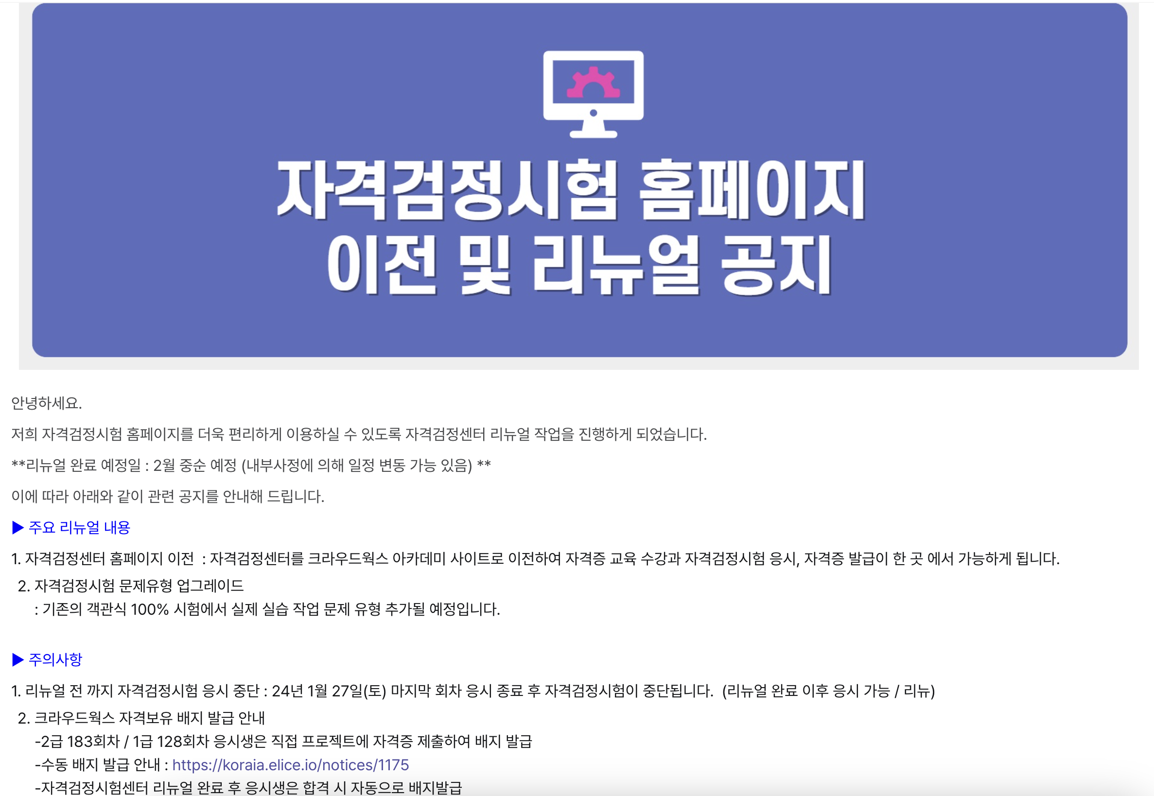 홈페이지 리뉴얼이 끝나면 , 시험 치르셔서 좋은 결과 있으시길 바랍니다.