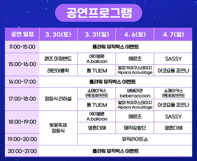 3월 29일 (금) ~ 4월 20일 (토) / 매주 금 · 토