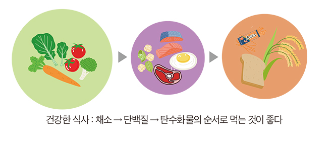 순서 : 식이섬유 - 단백질 - 탄수화물