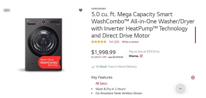북미에서 먼저 출시했다고 합니다. 스펙은 25KG 세탁기 + 건조기 13KG라고 합니다.