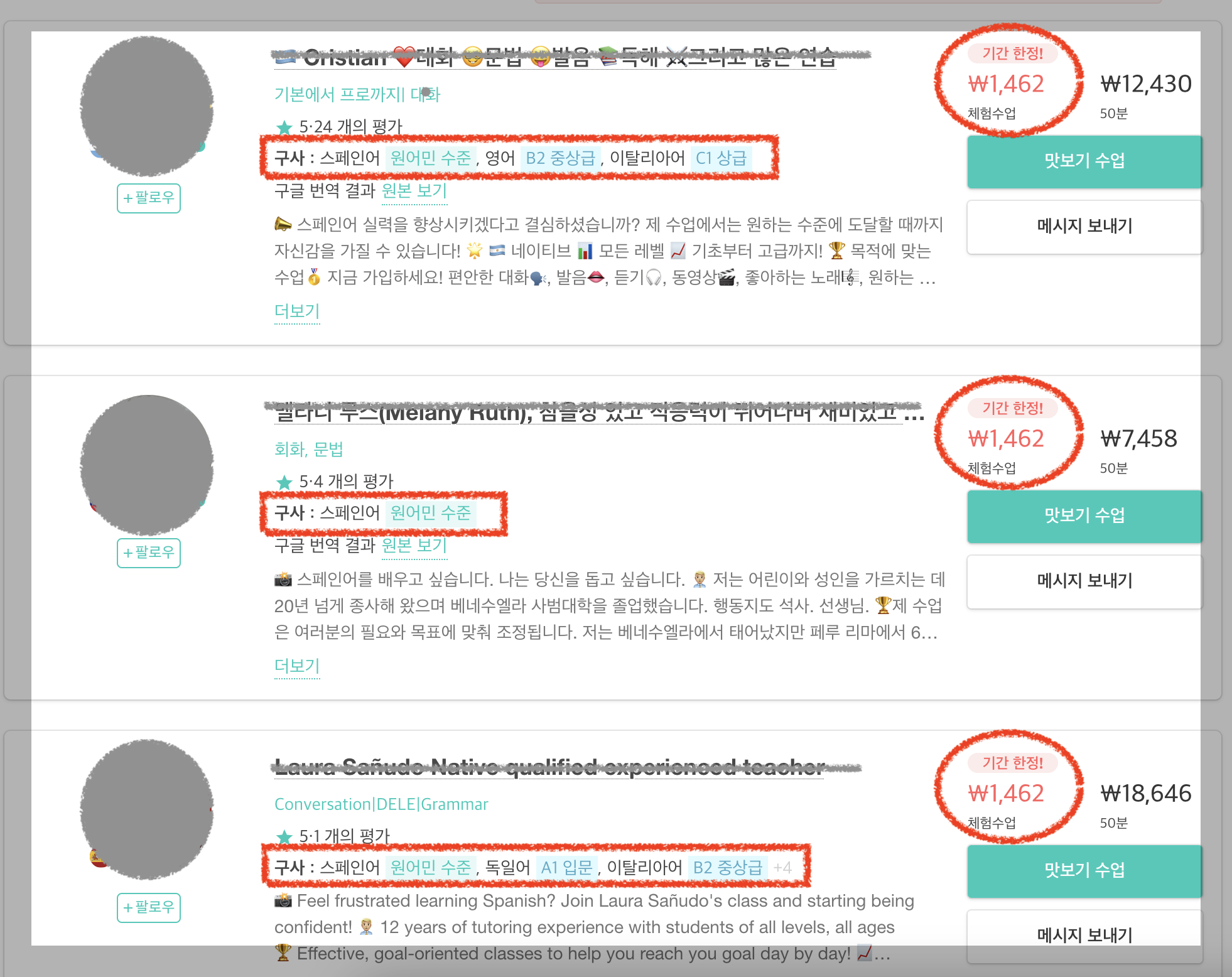스페인어랑 독일어 위주로 알아보니 여기만큼 원어민 / 한국인 선생님이 다양한 선택지가 없더라고요.