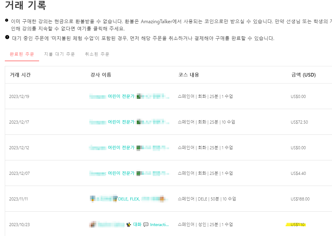 *혹시 예약한 수업을 취소/변경하시고 싶으시면 12전에 연락을 선생님께 해드려야 합니다.