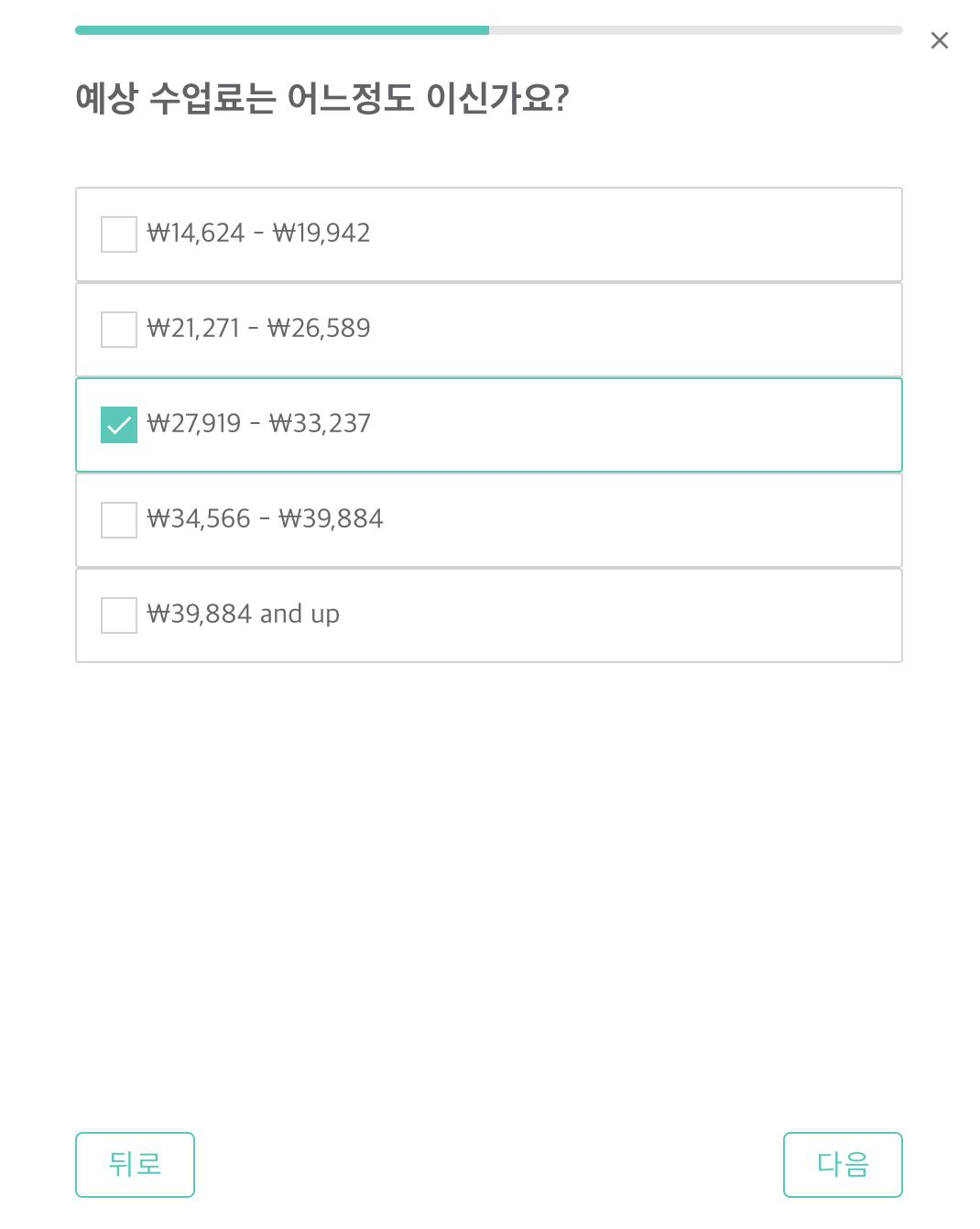저는 [ 구사 언어 / 수업방식 / 금액 ] 이 세 가지가 제일 중요했어요.