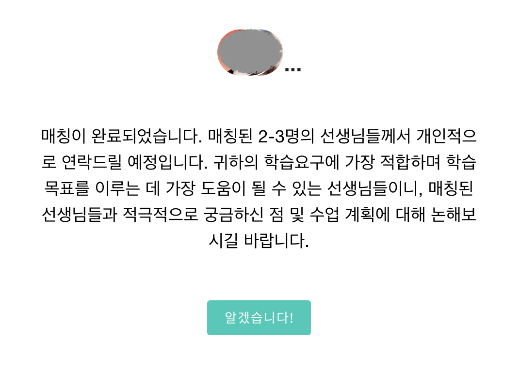 등 질문에 답하면 선생님을 매칭해 주세요.