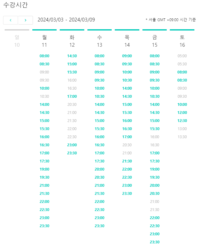 + 다른 플랫폼에서는 시간도 선생님도 제 마음대로 잘 고르지 못하는 곳도 있었어요.