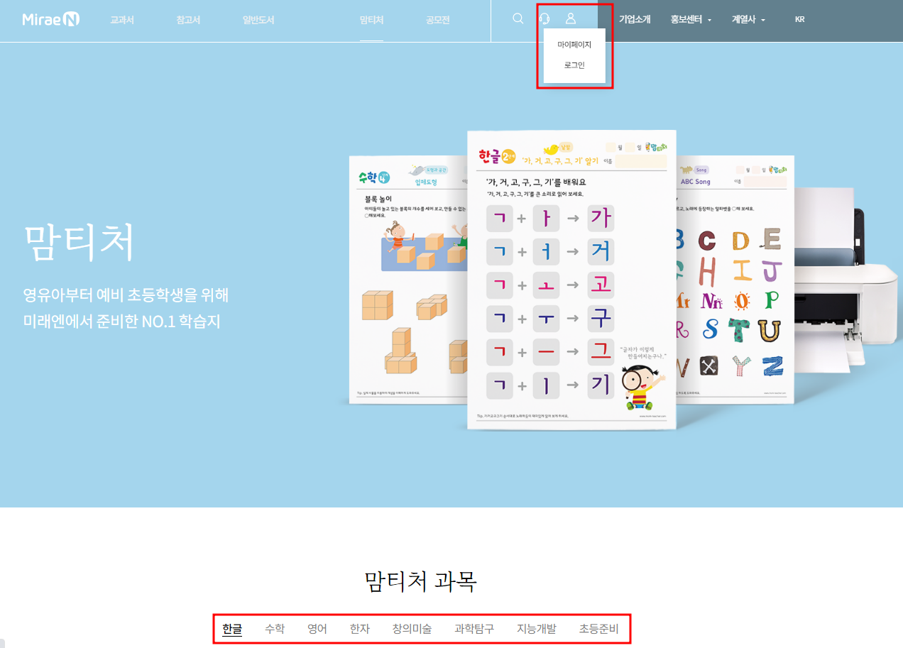 미래엔 맘티처 자료 찾기