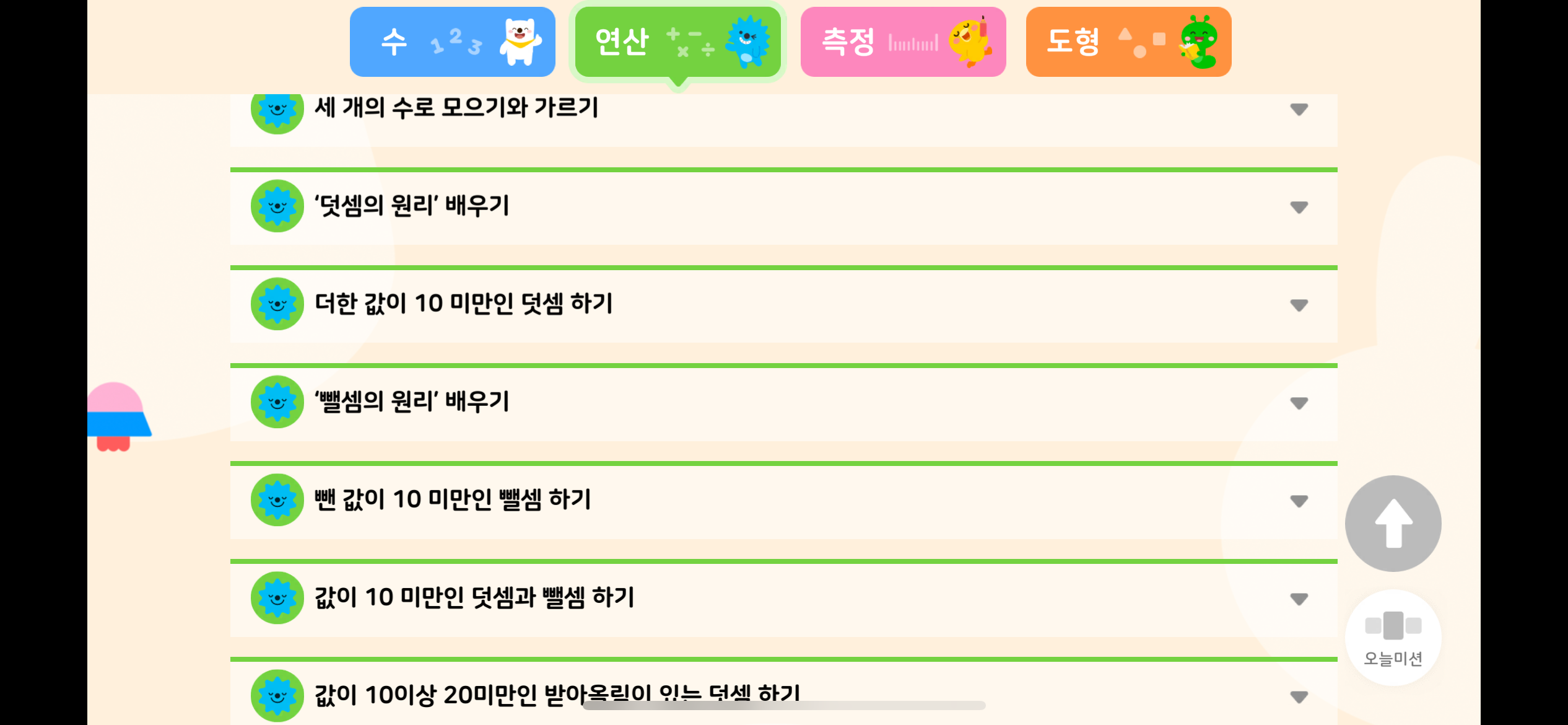 연산, 측정, 도형까지 다뤄줍니다.