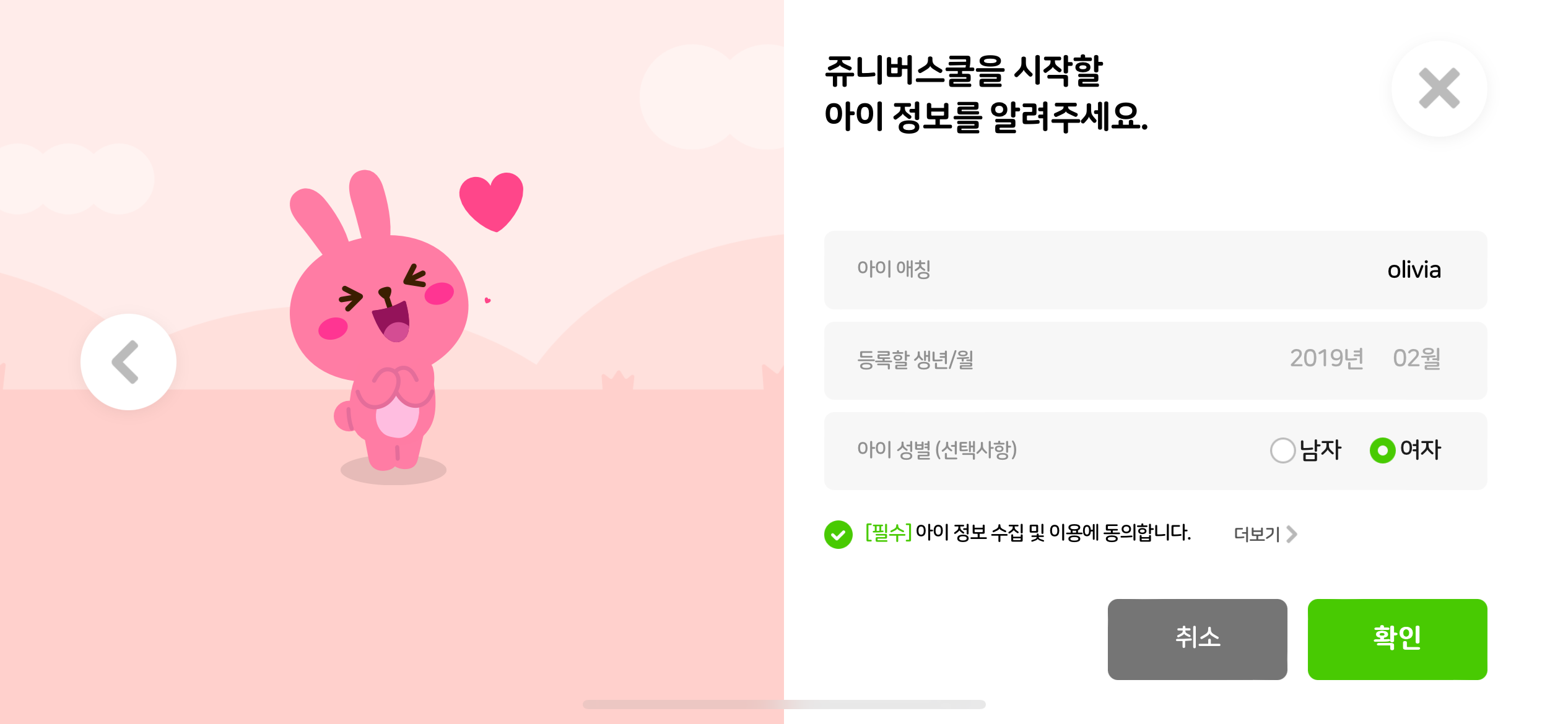 거의 다 왔어요. 사용할 아이정보 설명하면 이제 사용가능해요!