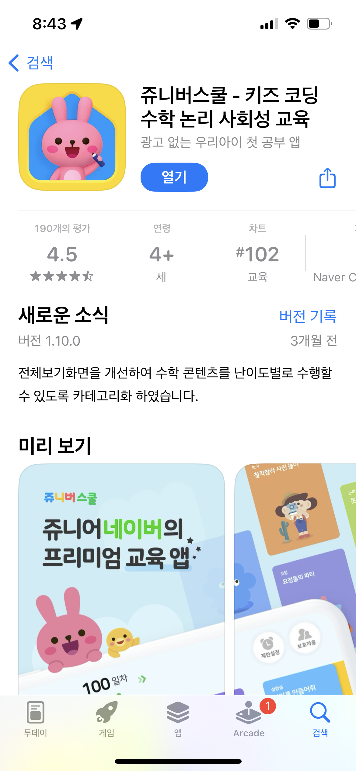 그때 그 주니어 네이버가 쥬니버스쿨이라는 앱을 출시했어요.