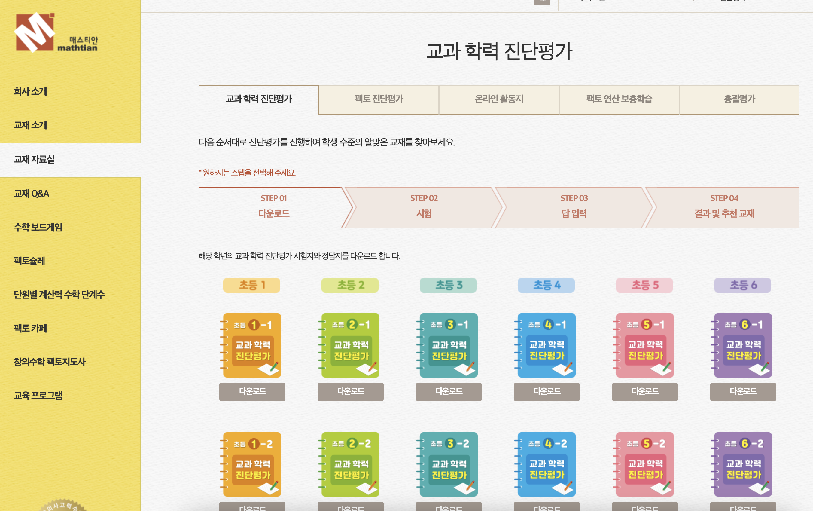 홈페이지에는 팩토 진단평가뿐 아니라 교과 학력 진단평가에 온라인 활동지까지 있어요!