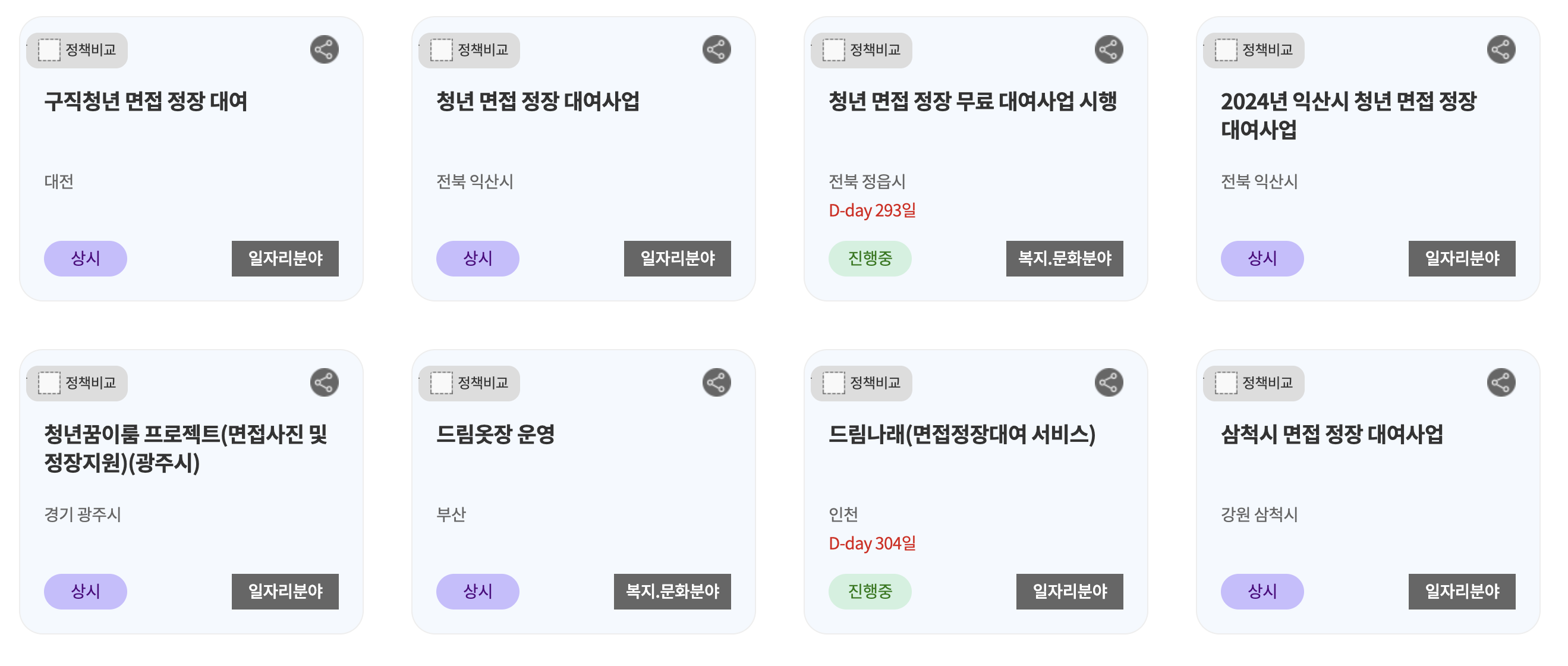 ⊙ 전북 익산시 청년 면접 정장 대여 사업