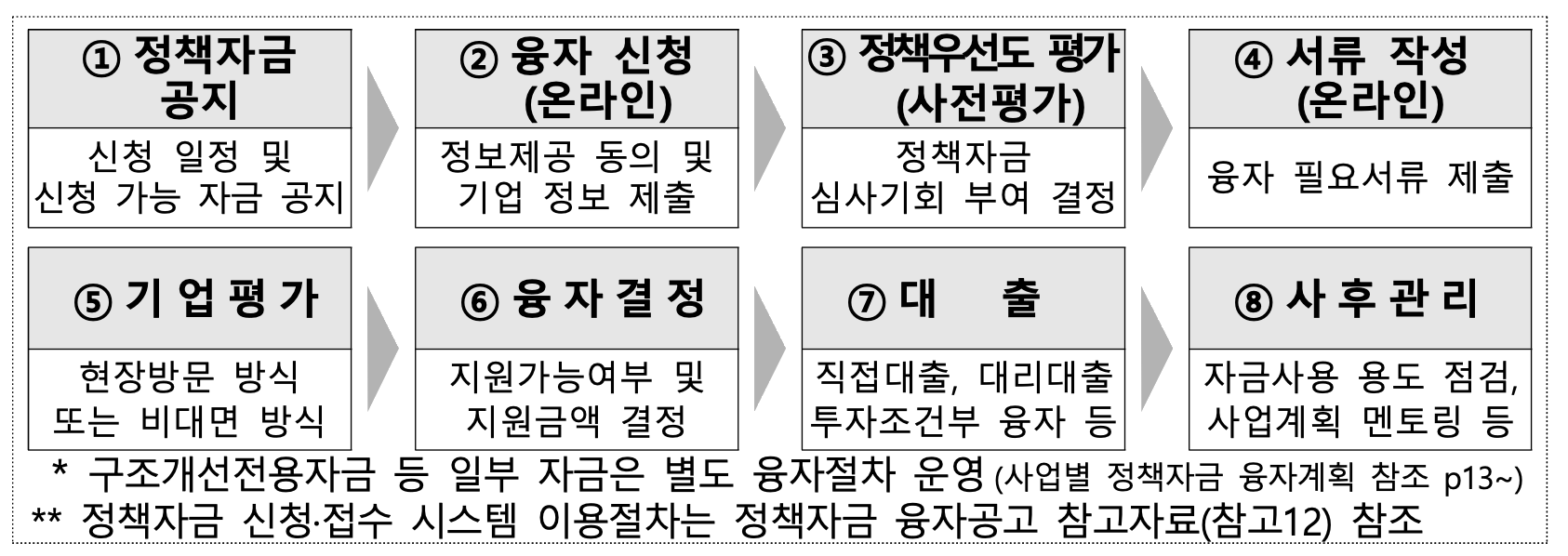 ※ 자금 신청·접수와 함께 교육·멘토링 실시 및 사업계획서 등에 대한 평가를 통해 융자 결정 후 대출
