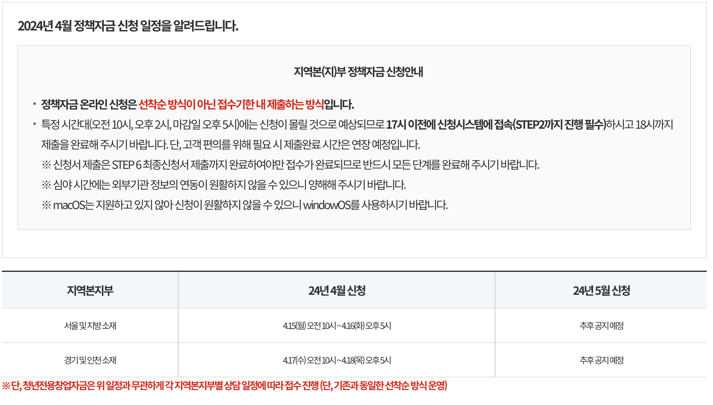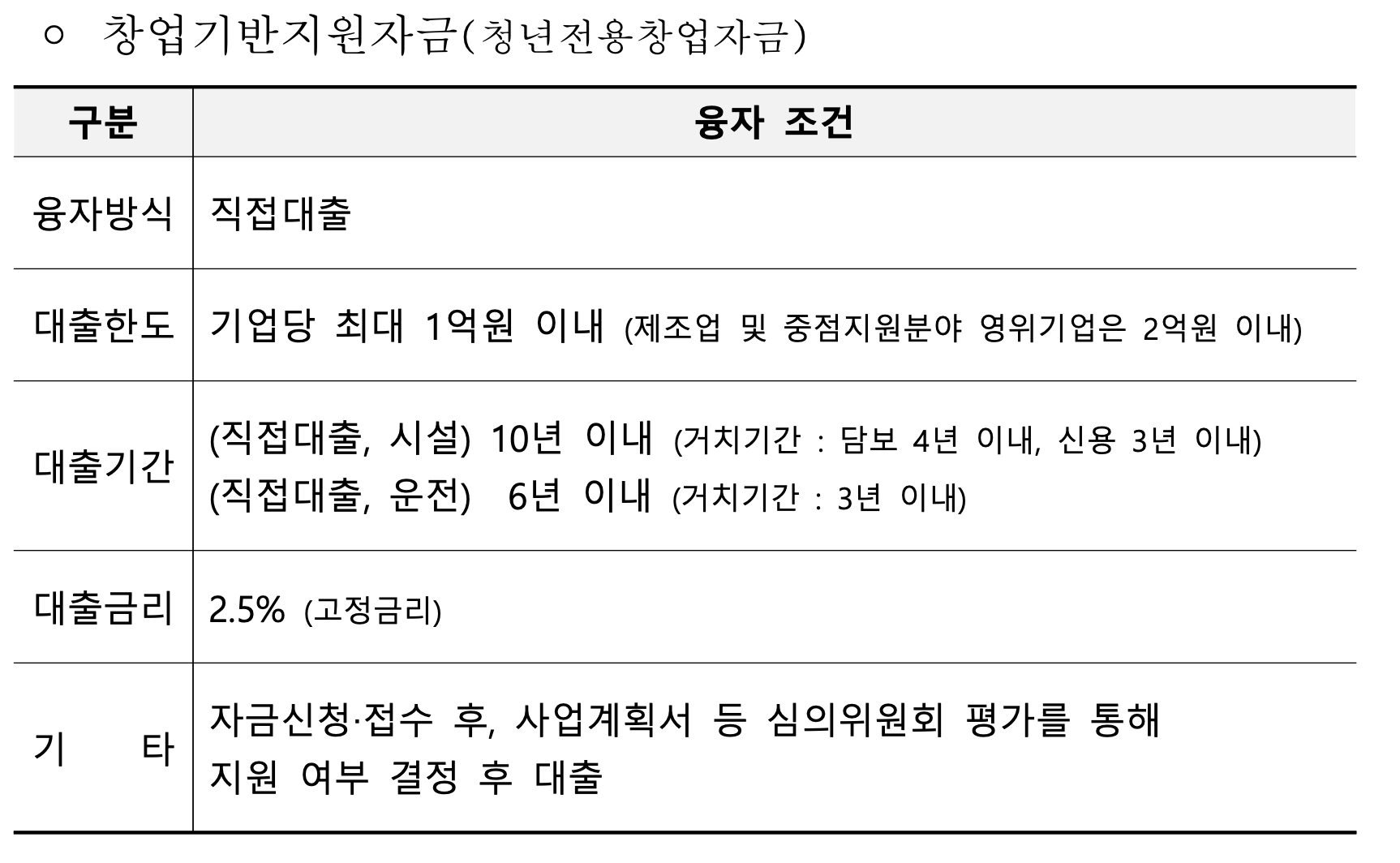 청년전용자금이 아닌 일반창업기반자금의 신청요건도 함께 확인하세요