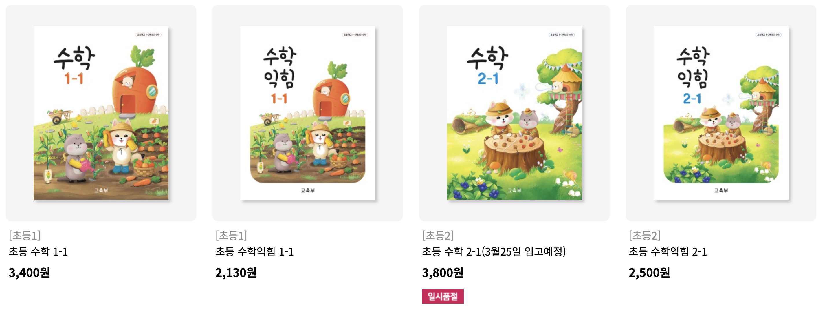 24/03/11일 기준 2-1학기 수학은 일시 품절이네요.