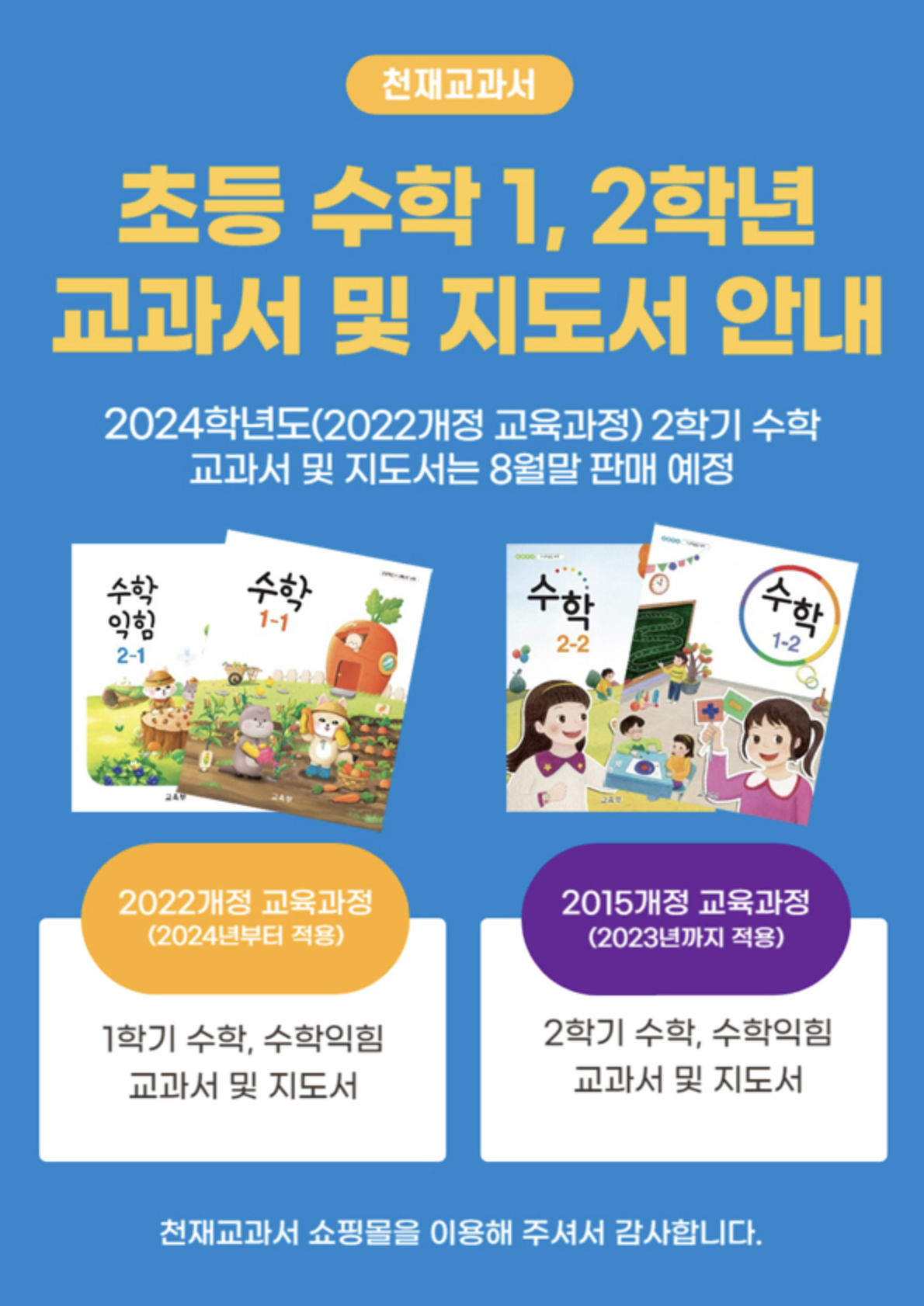 2024년 2학기 수학 교과서와 지도서는 8월 말부터 판매 예정이라고 하니,