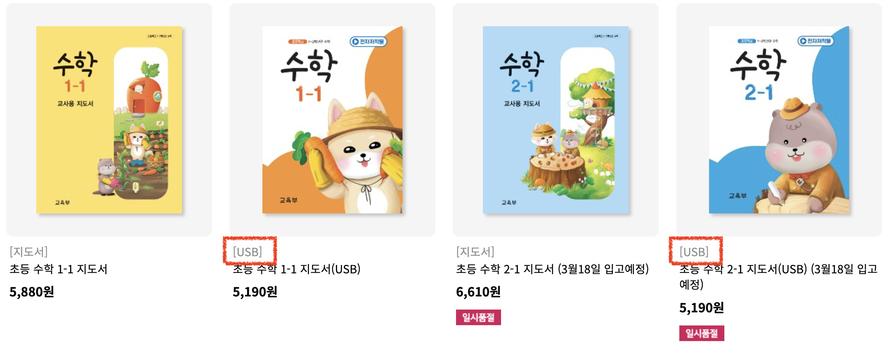 지도서 카테고리에 들어가시면 책과 USB로 선택이 가능합니다.