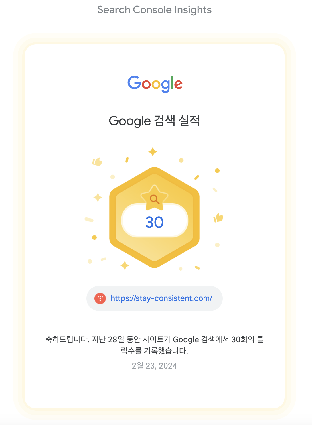 다음 28일 목표는 Google 검색 실적 60회로 잡아야겠어요!