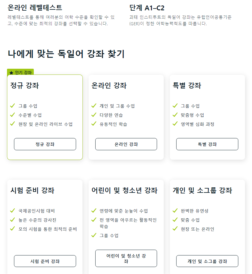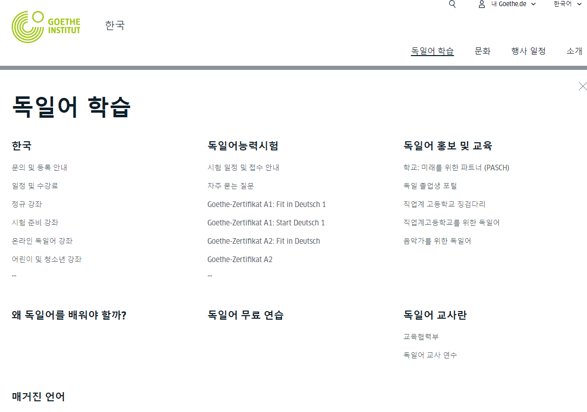 독일어 강좌 (성인/ 어린이 및 청소년) , 독일어능력시험 일정 안내 및 접수를 포함해