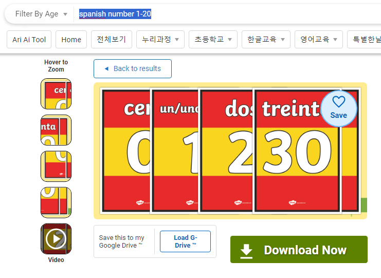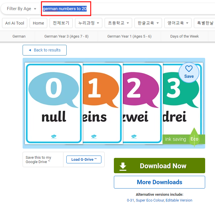 이번에도 german numbers / spanish numbers로 검색을 했어요!