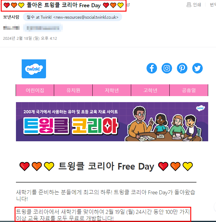 트윙클 코리아가 오늘 2월 19일 FREE DAY로 돌아왔습니다!