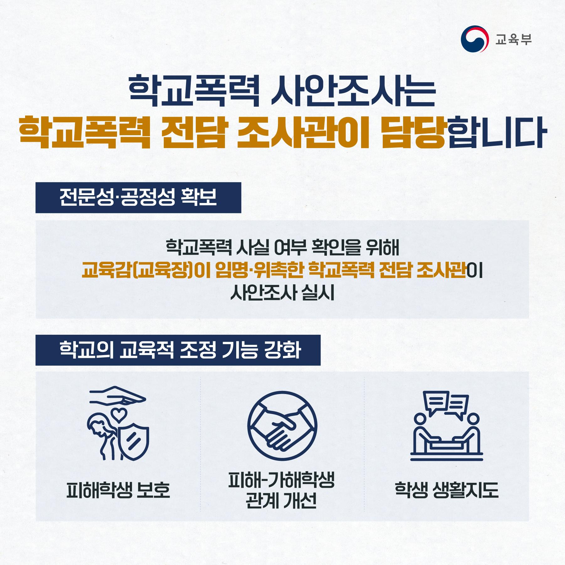 학교폭력 사안조사는 학교폭력 전담 조사관이 담당합니다