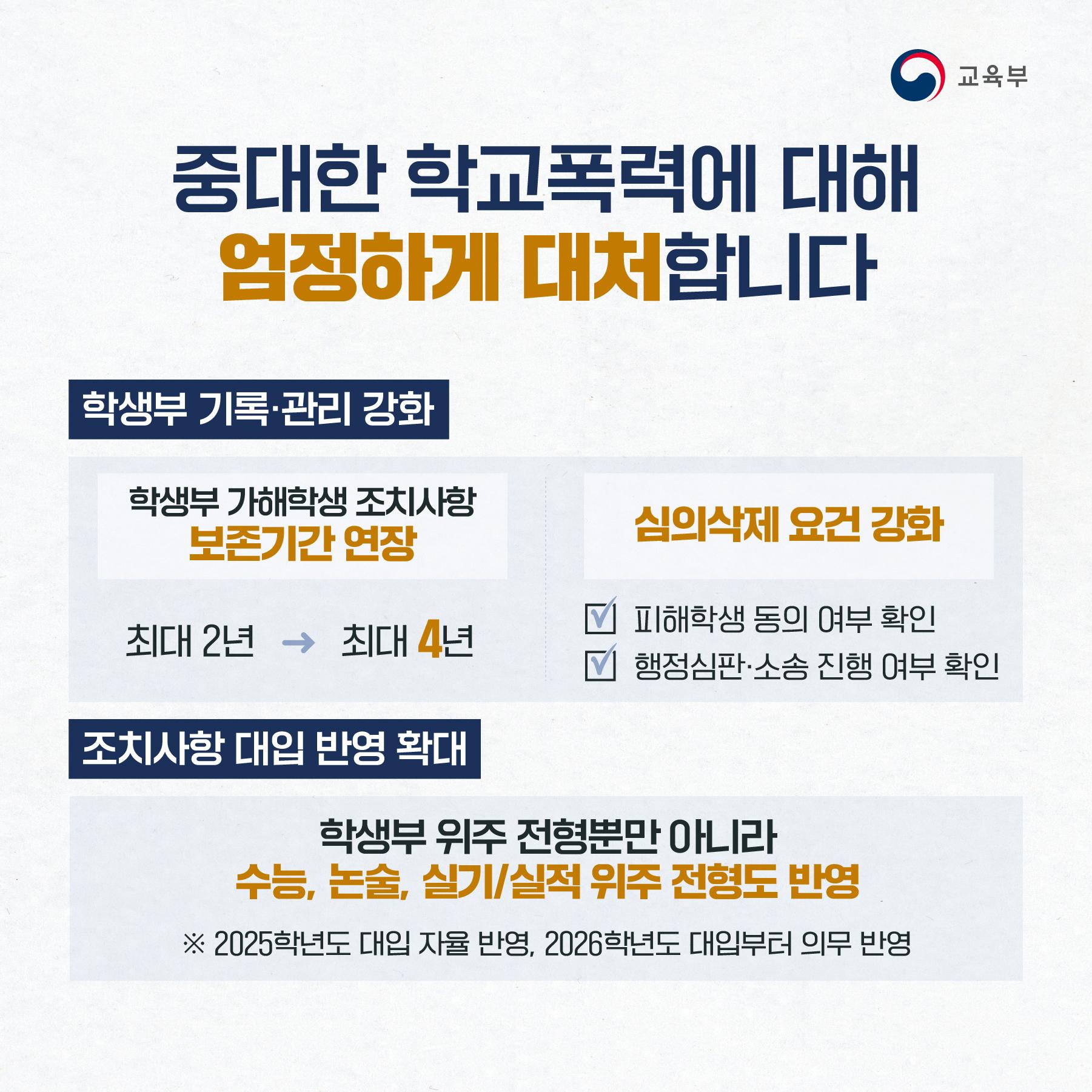 중대학 학교폭력에 대해 엄정하게 대처합니다