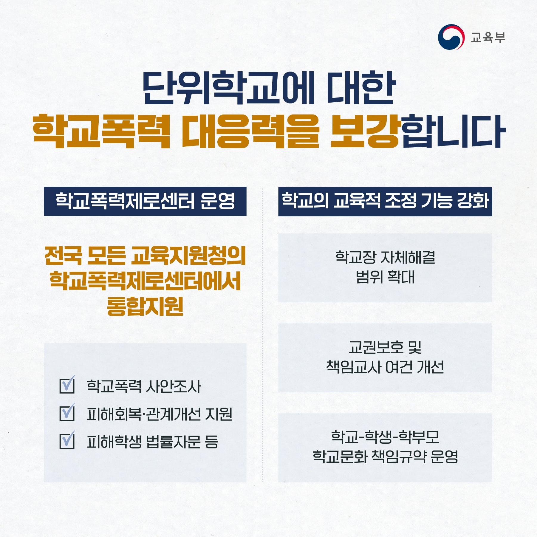단위학교에 대한 학교폭력 대응력을 보강합니다