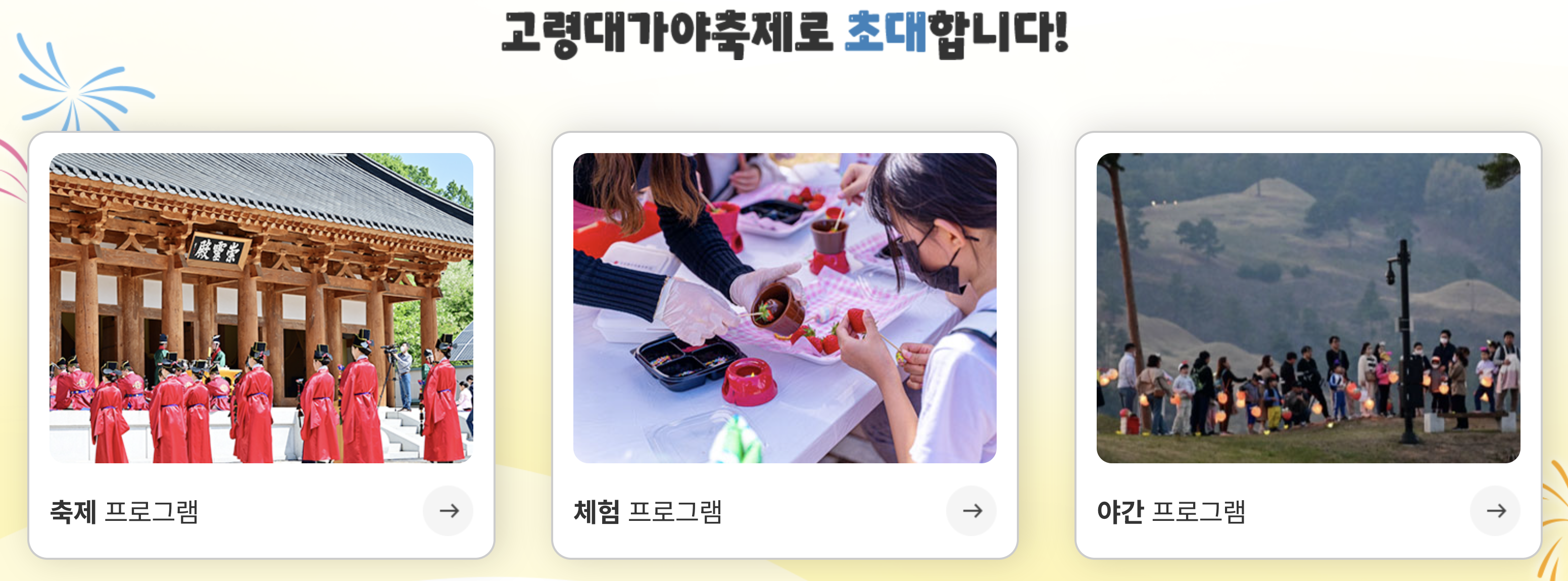 - 대가야의 역사를 배경으로 한 체험으로 대가야 축제의 시그니쳐 체험