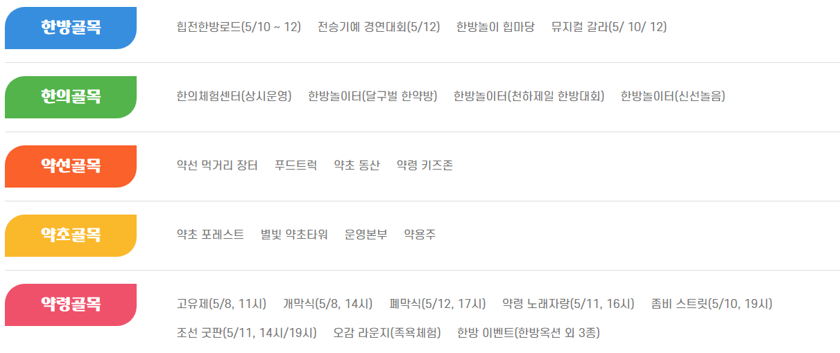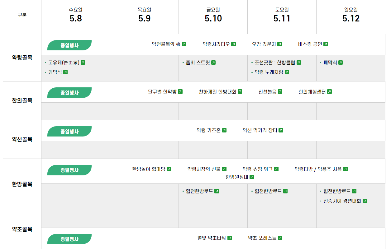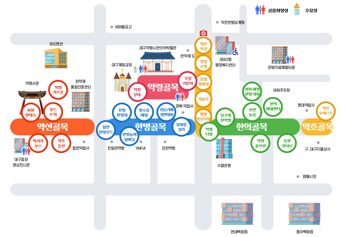 * 한의골목, 약선골목, 한방골목, 약초골목, 약령골목