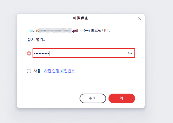 PDF파일에 비밀번호만 기입하면