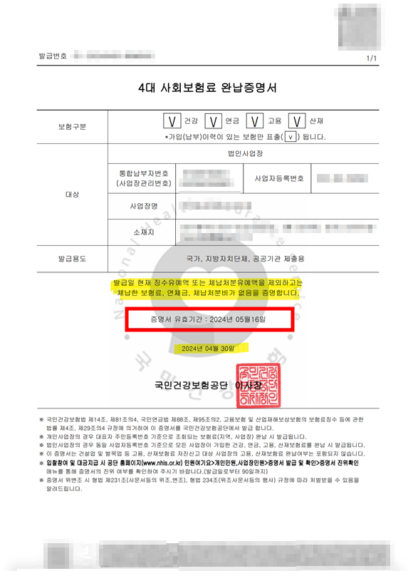 ** 4대보험 완납증명서
