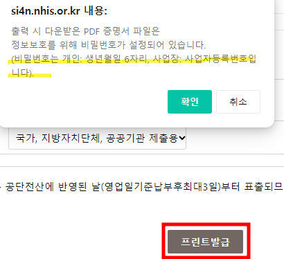 발급용도 확인하고 프린프 발급