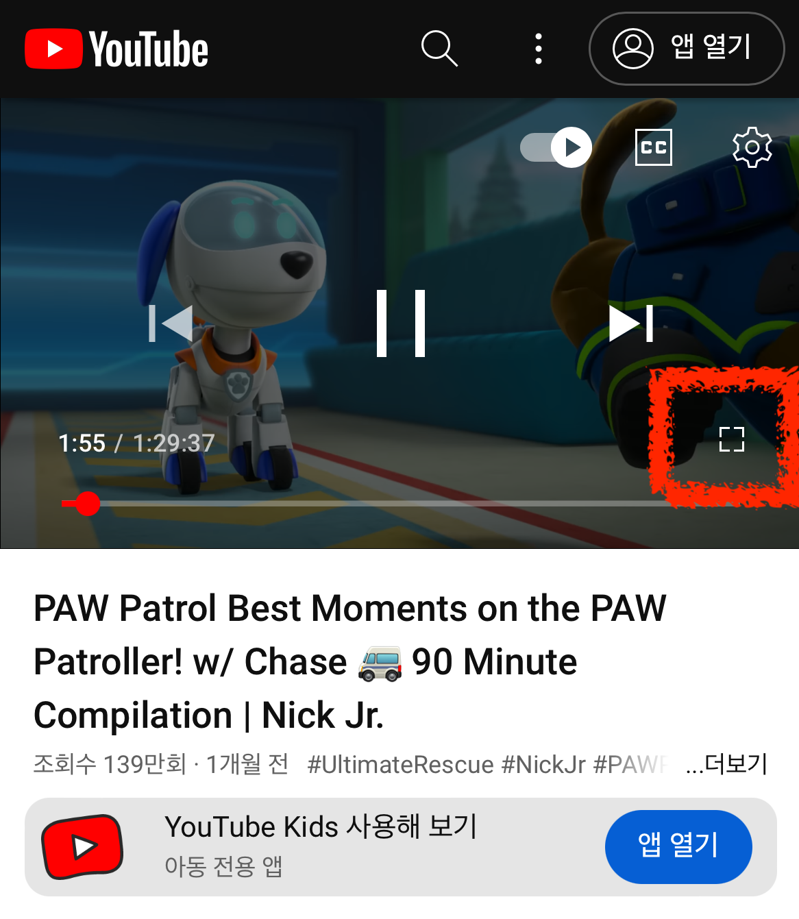 1. 선택한 영상에서 오른쪽 하단에 최대화 아이콘을 누르면