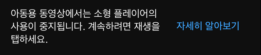 보통 유튜브에서 아동영상을 보면 이 알람?이 뜨면서 영상이 중지되자나요.